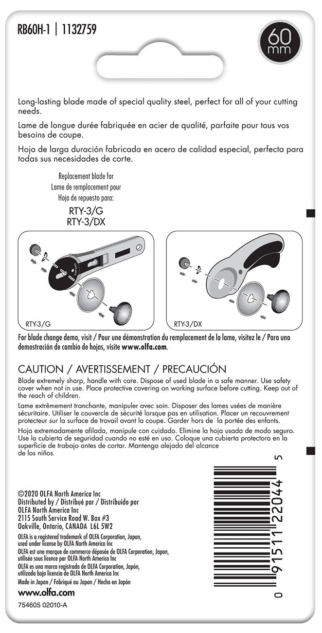 You create projects to last a lifetime and our new OLFA Endurance Rotary Blade cuts twice as long and fits all OLFA 60mm rotary cutters. It’s the perfect marriage of precision and quality that you expect from OLFA: it cuts effortlessly and retains its edge longer.