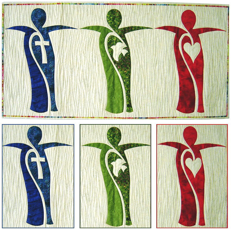 This simple design shares my belief that faith, hope and love are gifts from above. The symbols for faith, hope and love are seen within each shape. The colors also are representative of faith, hope and love.