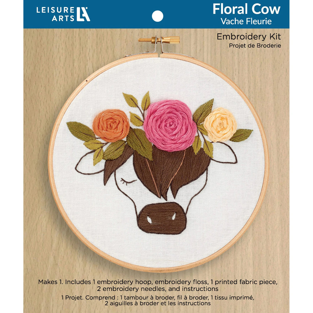 Leisure Arts Emb Kit 6" Floral Highland Cow