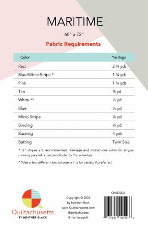 MARITIME Quilt Pattern is backordered and will ship as soon as it is back in stock.