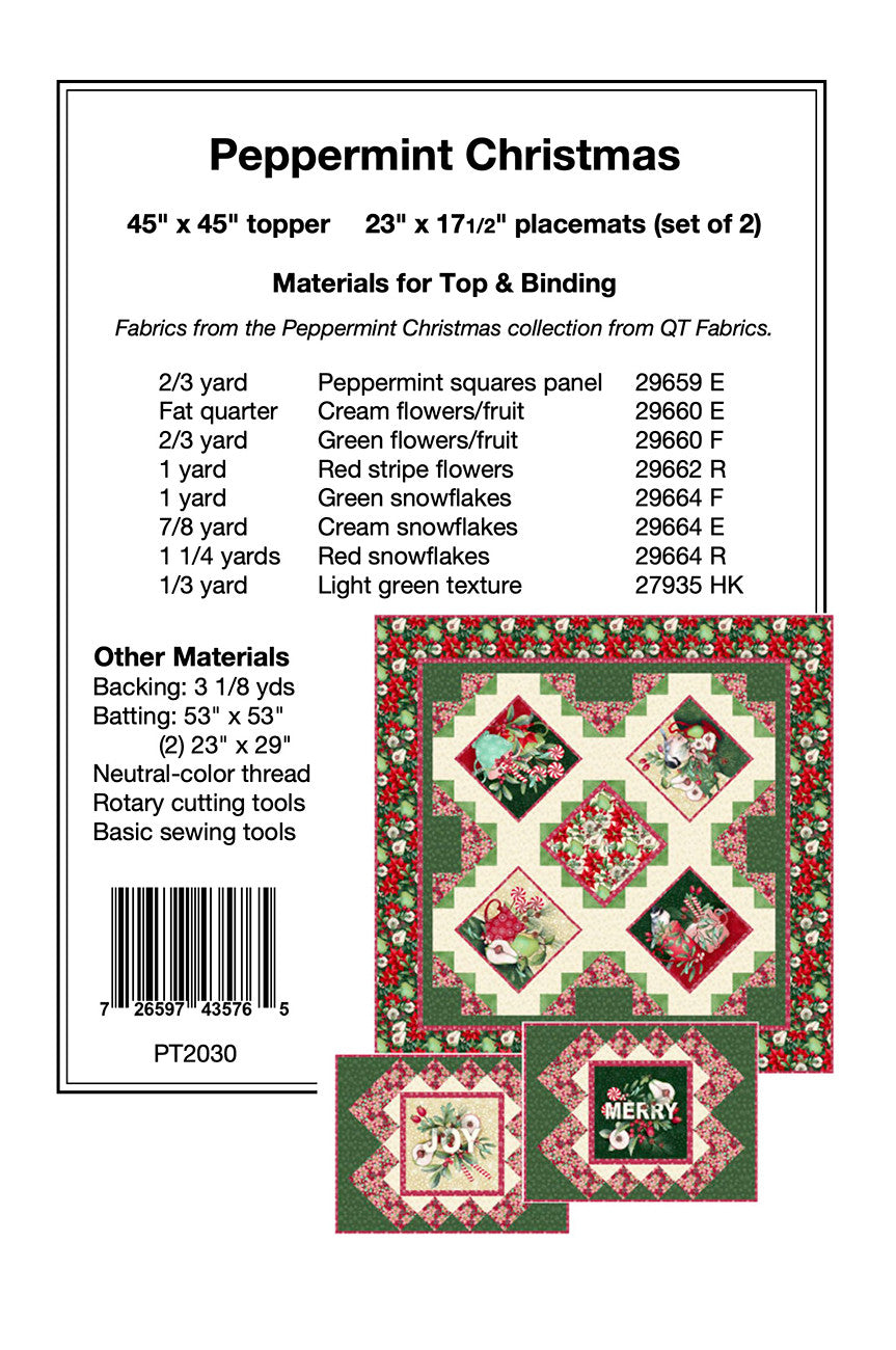 Fabrics shown from the Peppermint Christmas collection by QT Fabrics.