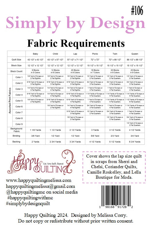Simply by Design Quilt Pattern is backordered and will ship as soon as it is back in stock.