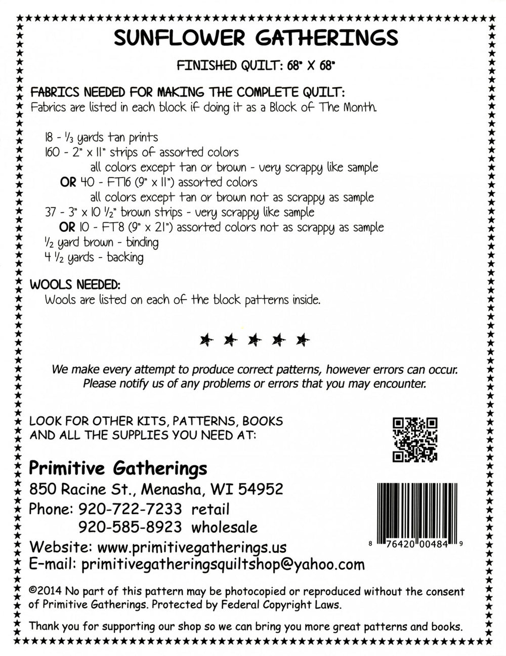 Sunflower Gatherings Quilt Pattern is backordered and will ship as soon as it is back in stock.