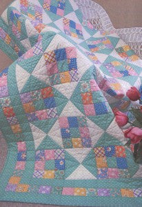 Easy as pie and as cute as a baby! Quickly strip-piece the nine-patch blocks and set them together with an hourglass block and youre done. This quilt is a great project to use up scraps (or fat eighths). Make it your way, any size, with your favorite fabrics!