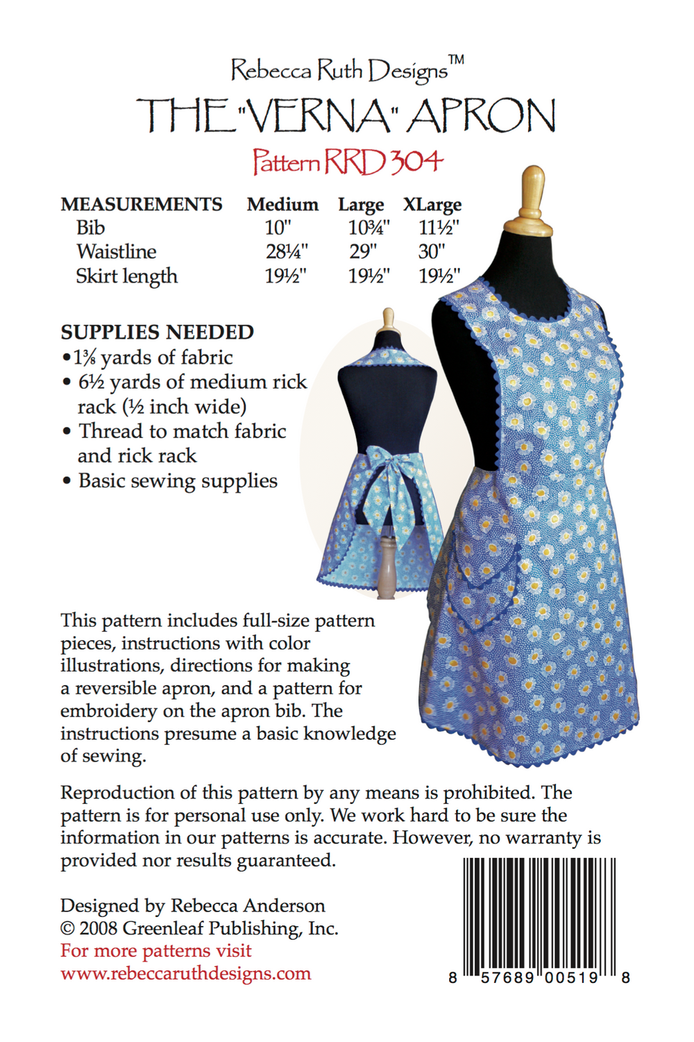 "Verna" Apron Downloadable Pattern