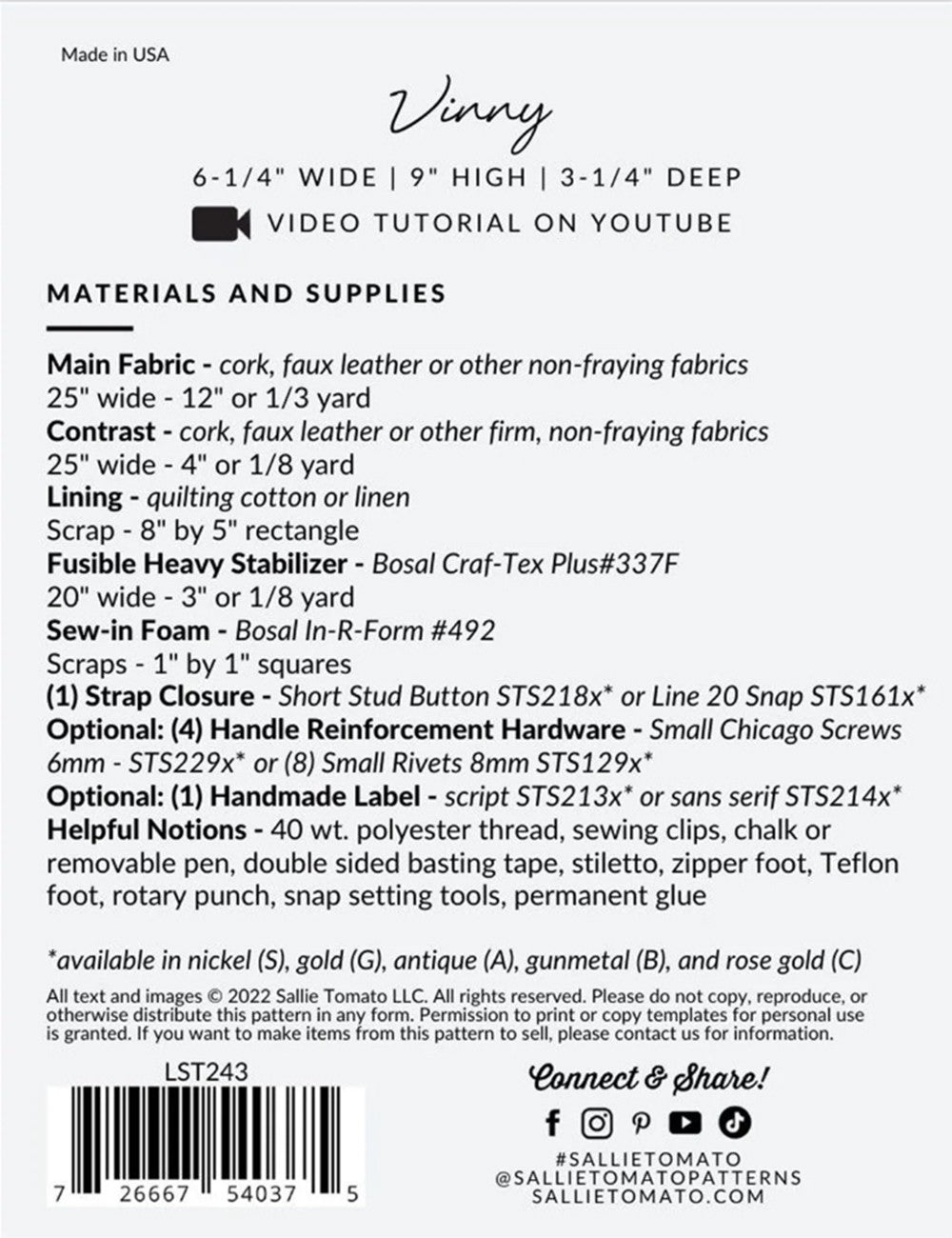 Vinny Bag Pattern is backordered and will ship as soon as it is back in stock.