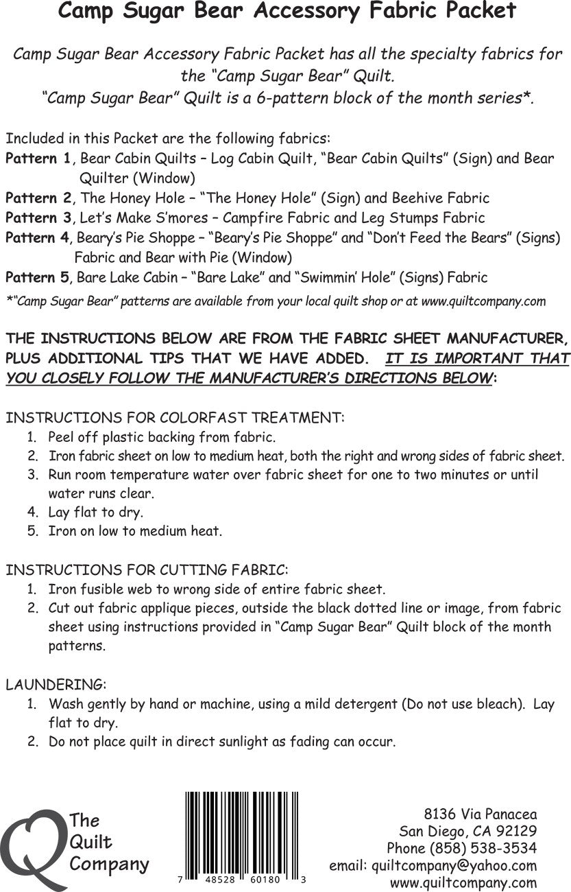 Camp Sugar Bear Accessory Fabric Packet