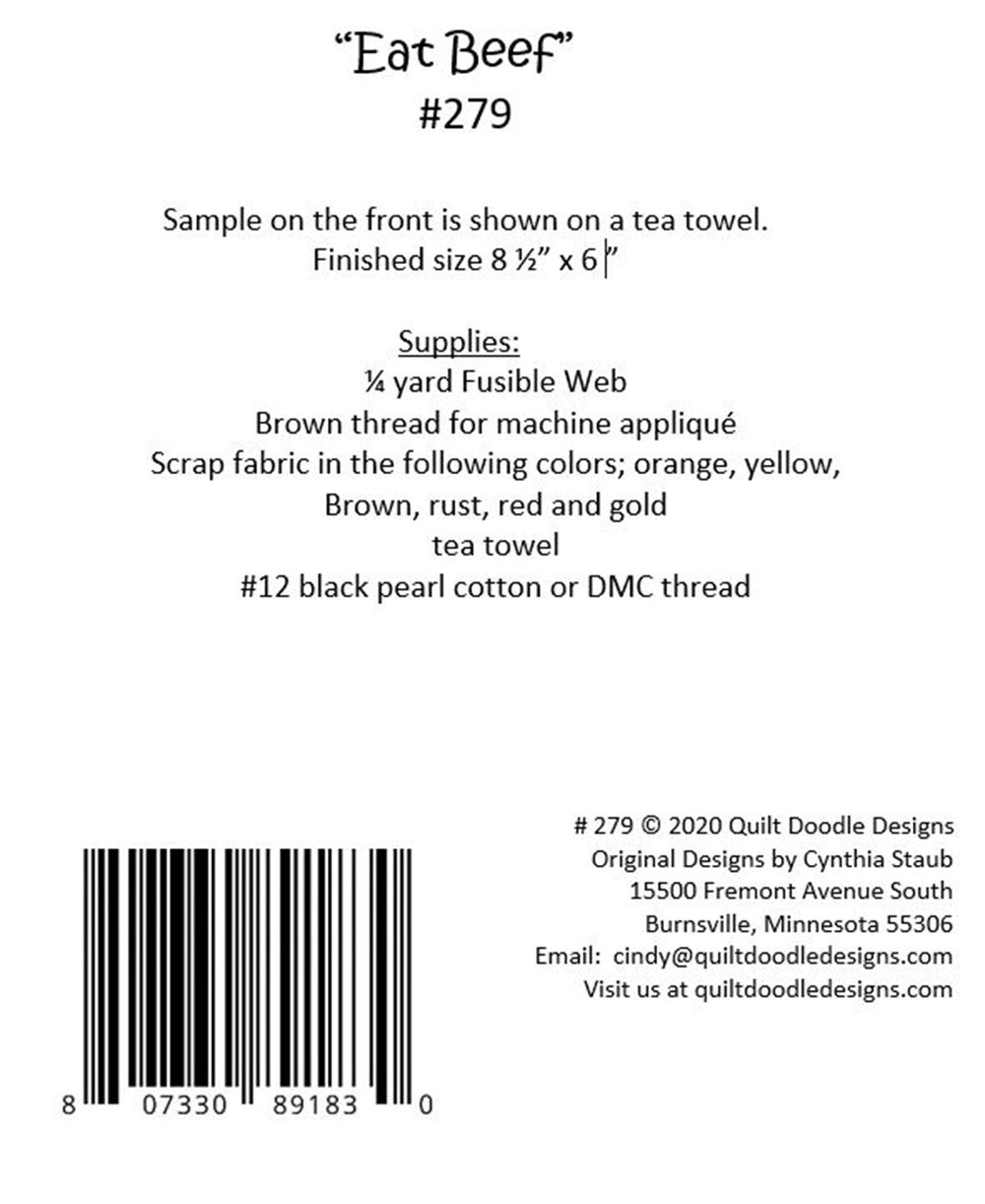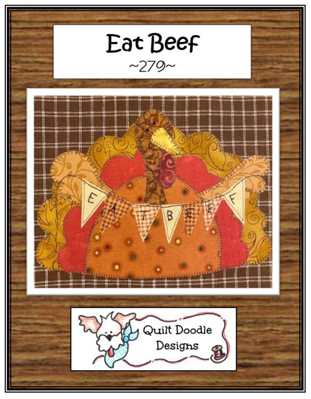 This turkey is campaigning 'EAT BEEF' for Thanksgiving. A fun fall design for a tea towel. This turkey would also be a fun design to put on a seasonal fall pillow or made into a mug rug. Applique design measures 8 1/2" x 6"