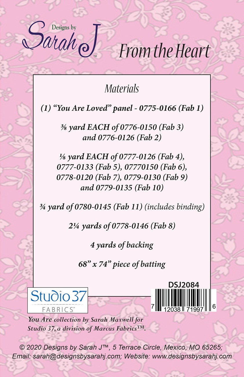 Show your love by surrounding a panel print with quick pieced hearts in this 60" x 66" quilt.