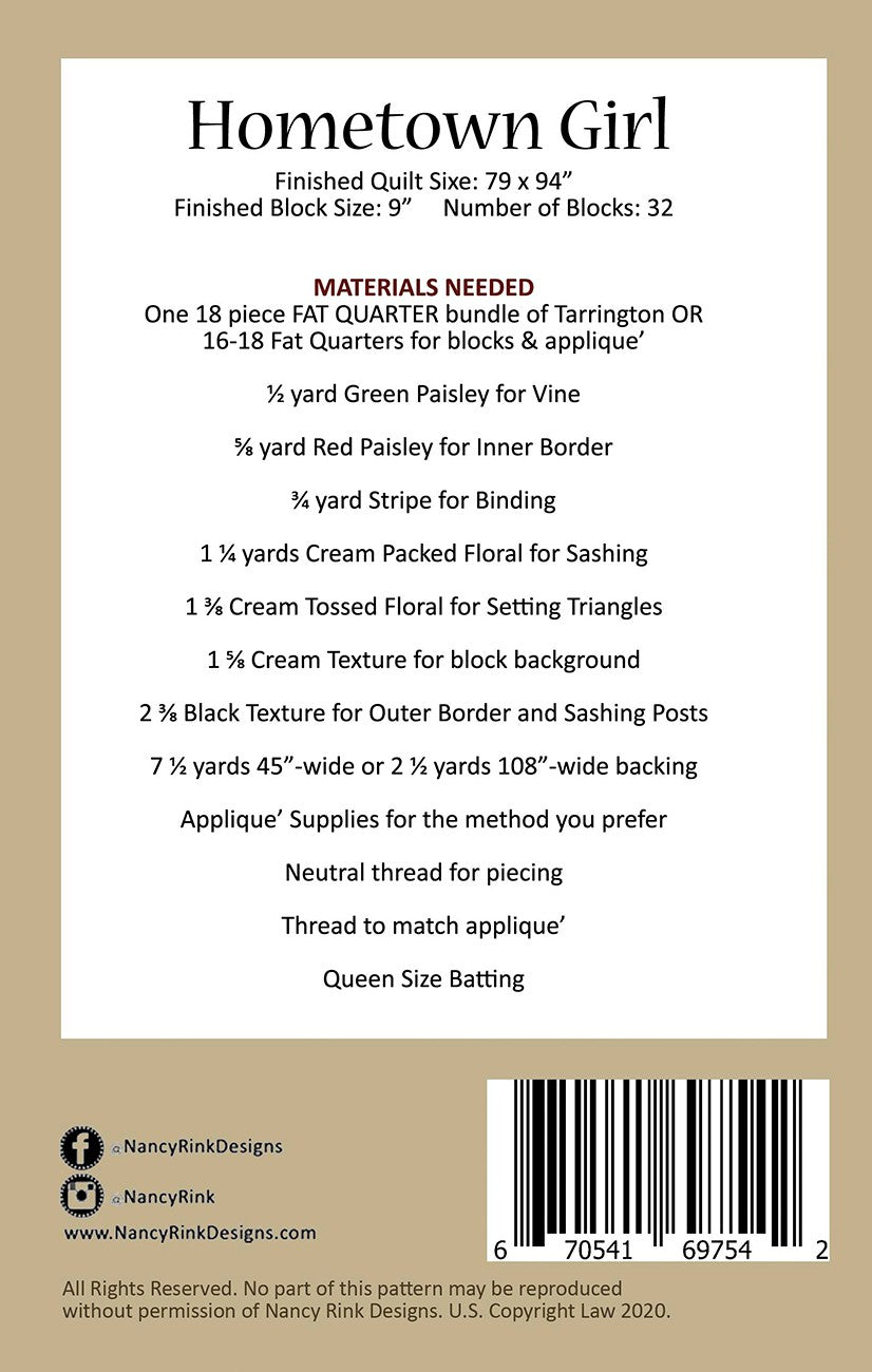 79 x 94 Pieced and Appliqued quilt featuring the Tarrington collection by Nancy Rink for Marcus Fabrics Fat Quarter Friendly