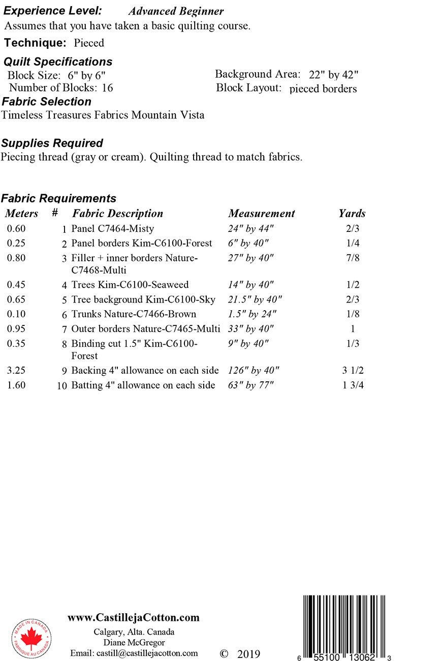 Fabric shown in the sample is Timeless Treasures Fabrics Mountain Vista (this panel was discontinued and is no longer available)