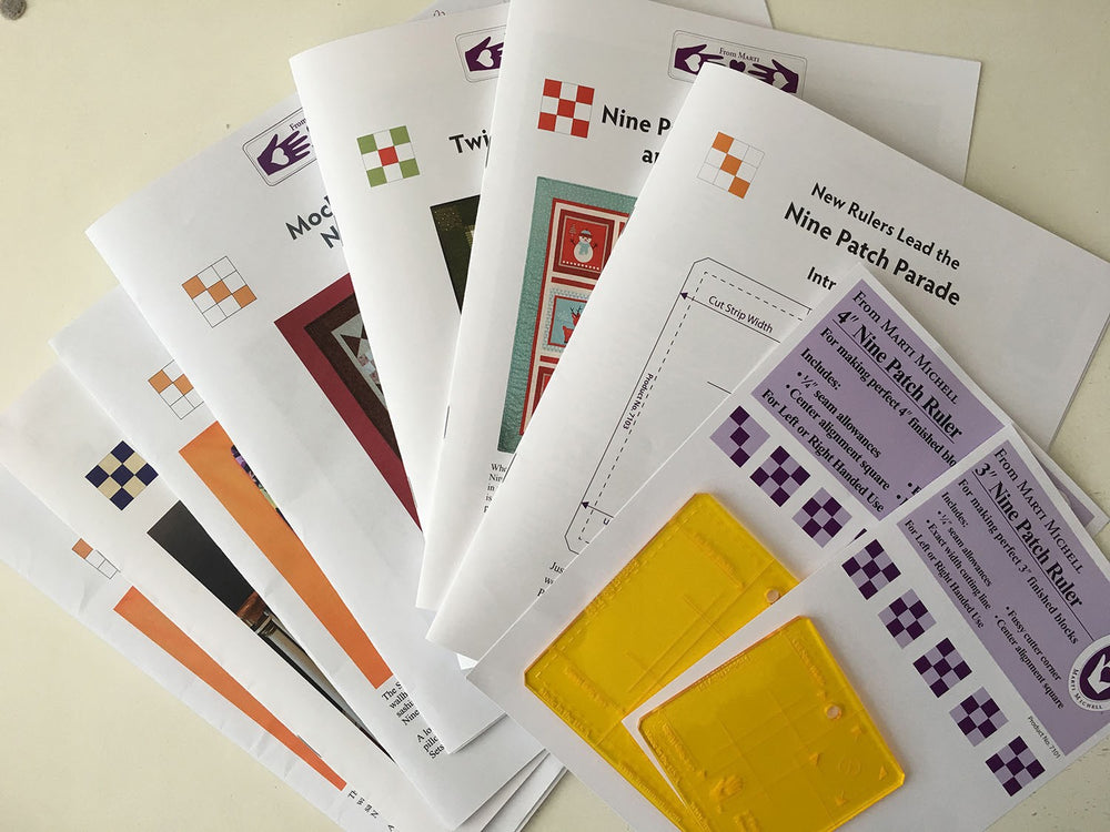 Nine Patch Parade Starter Set, 6 Pattern Booklets of 12 to 20 Pages Each, 20 Page Intro To 9 Patch Parade, Plus 3" and 4" Nine Patch Rulers