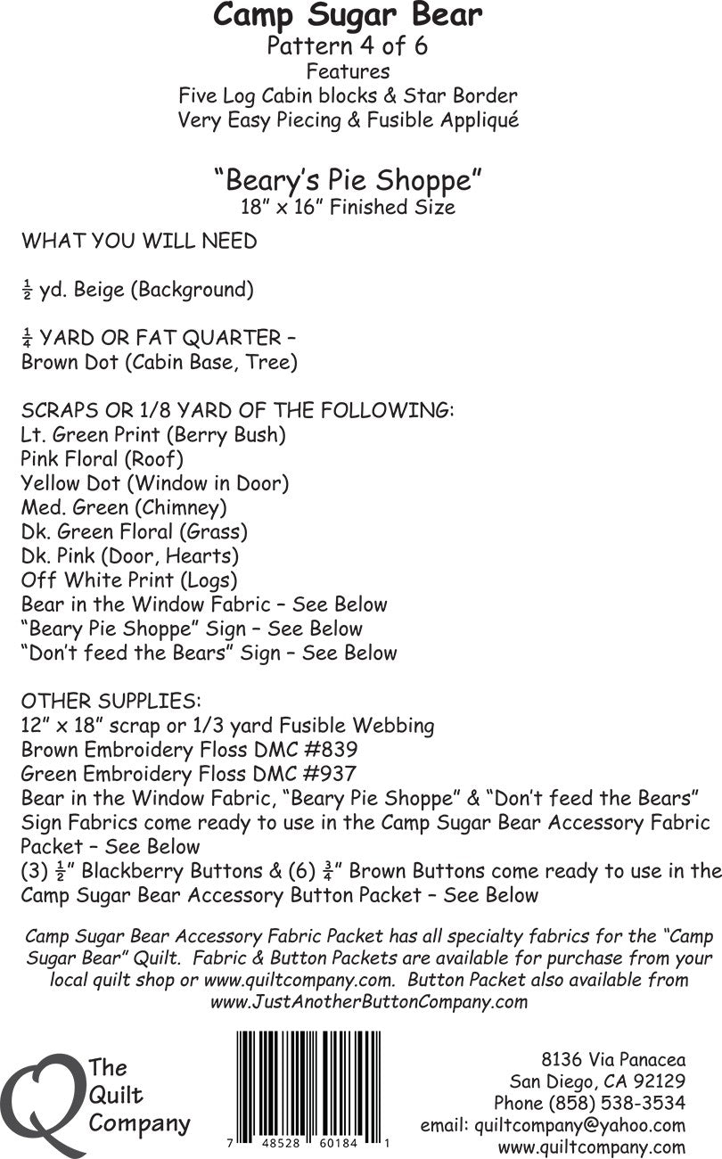 Pattern 4 Beary's Pie Shoppe is backordered and will ship as soon as it is back in stock.
