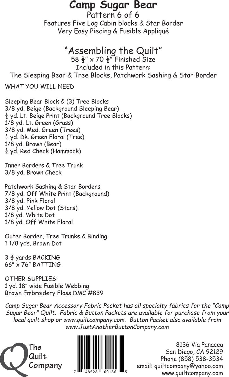Pattern 6 Assembling the Quilt is backordered and will ship as soon as it is back in stock.
