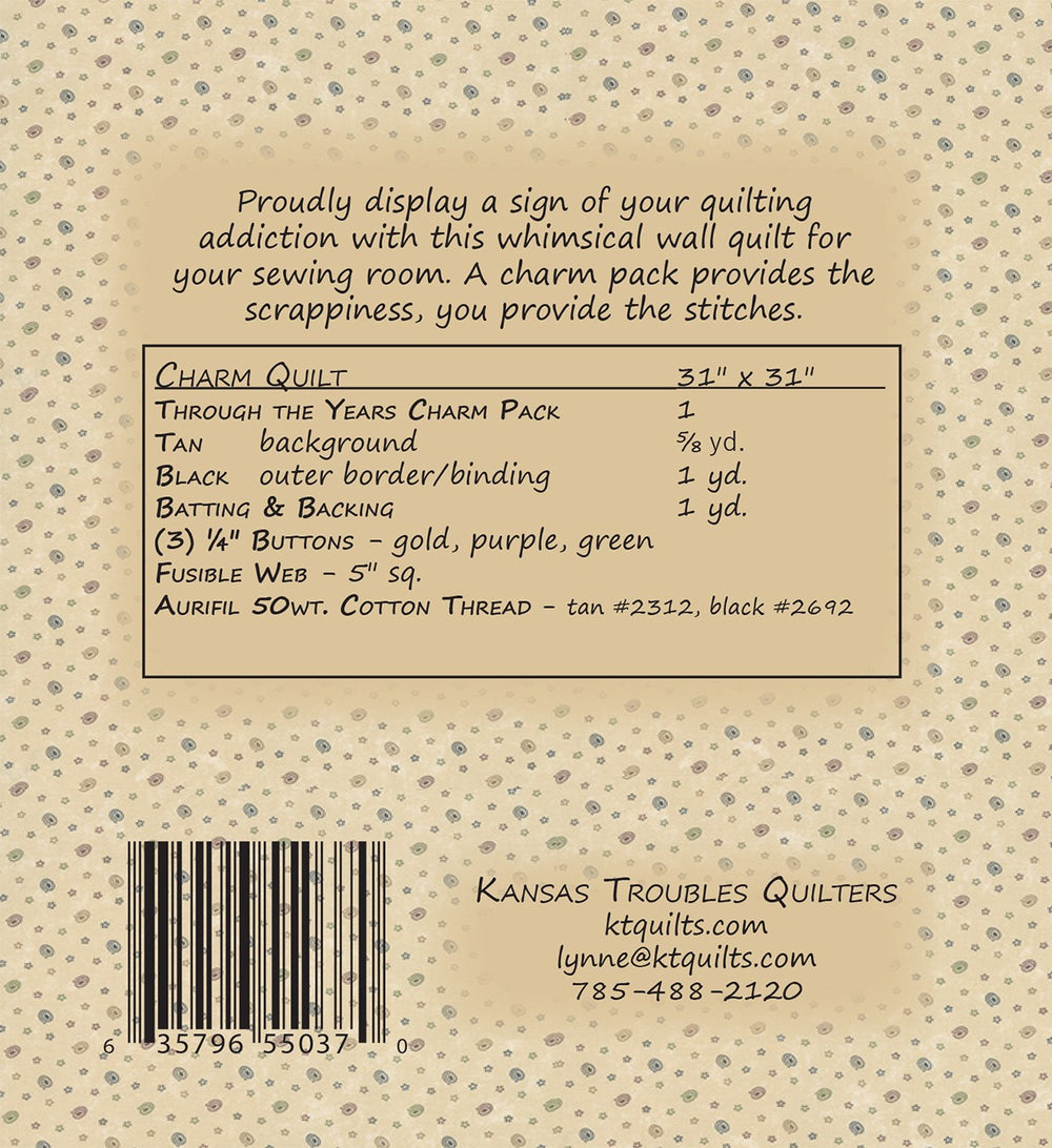 Sew What - KT Charm Pattern for Through the Years (31" X 31") Proudly display a sign of your quilting addiction with this whimsical wall quilt for your sewing room.