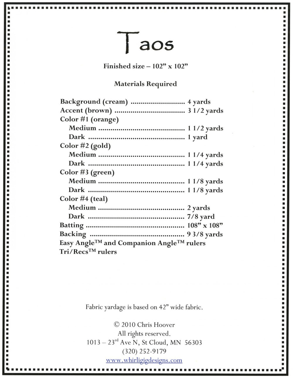 102in square ¢ Block of the Month or stand alone pattern. Requires Easy Angle, Companion Angle and tri/recs rulers.