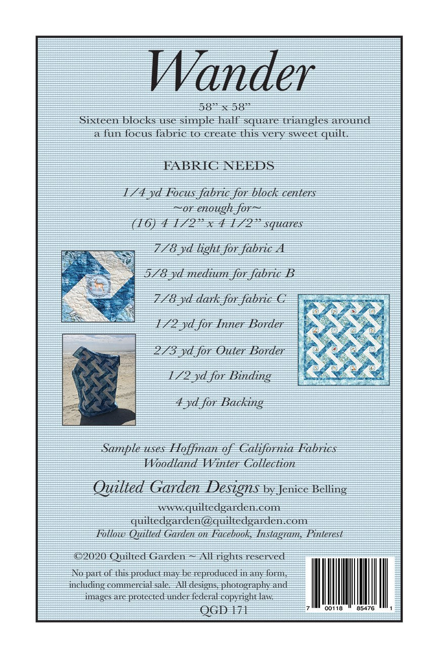 Basic half square triangles surround a focus block. Only five lovely fabrics required to keep the design simple yet flowing with movement.