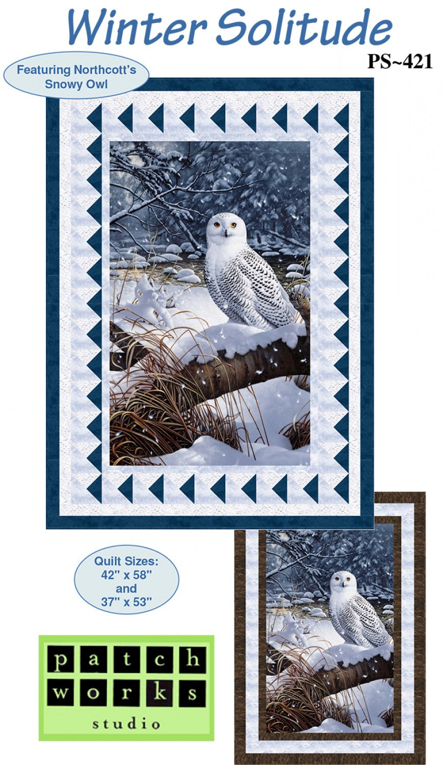 Frame this peaceful Snowy Owl panel with simple borders for a quick project. The larger quilt uses traditionally pieced blocks for a more elaborate border. Small Quilt: 37" x 53" Large Quilt: 42" x 58" Recommended Skill Level: Confident Beginner